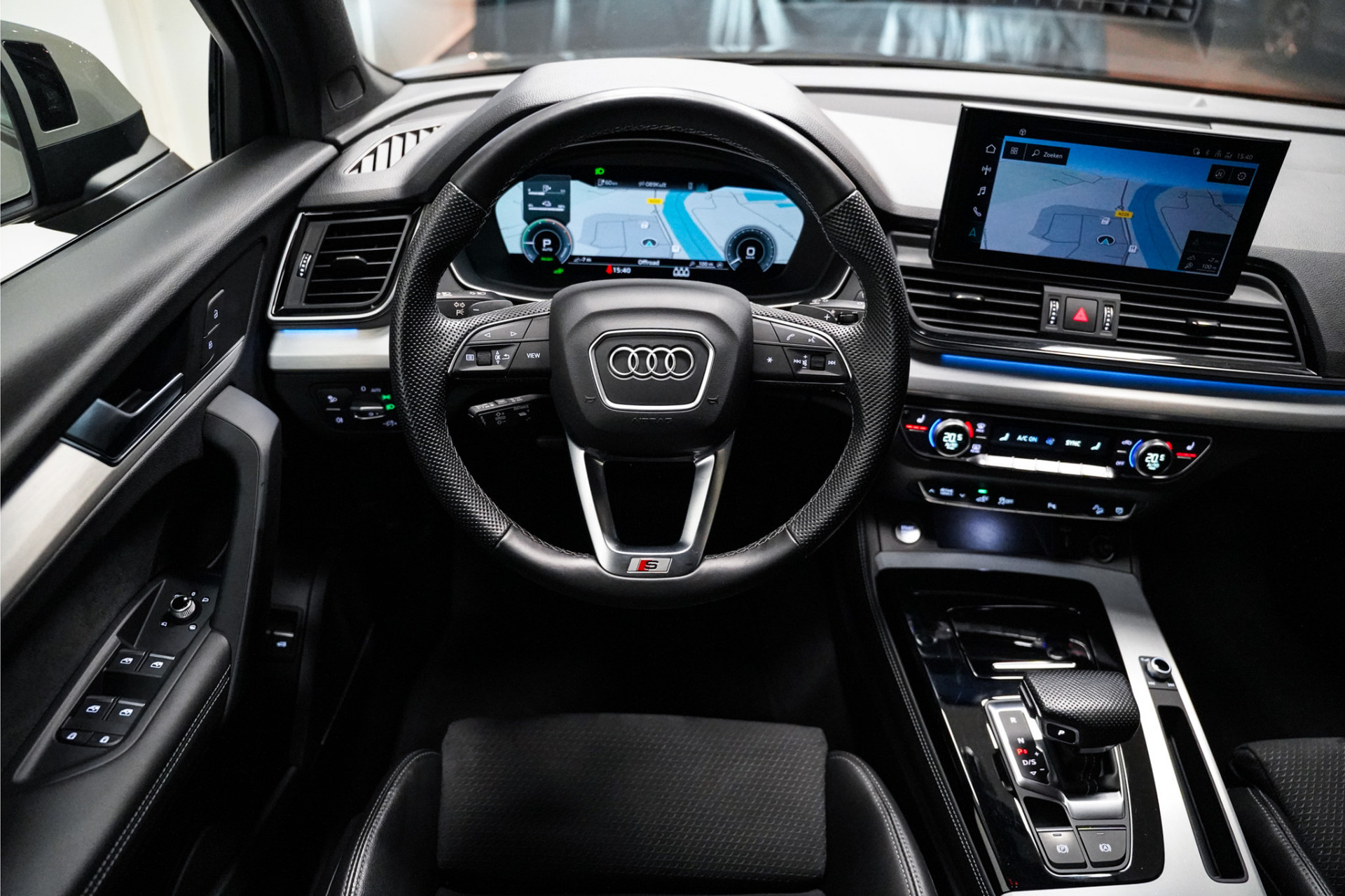 Een zeer fraaie Audi Q5 55e hybrid S-Line afkomstig van de Audi dealer en dealeronderhouden. Wat maakt hem fraai? Dubbel S-Line, quantum grijs met zwart optiek, matrix led, 20 inch, leder/alcantara sportstoelen, adaptive cruise control, side assist, camera, apple car play en sfeerverlichting. Wat een plaatje!