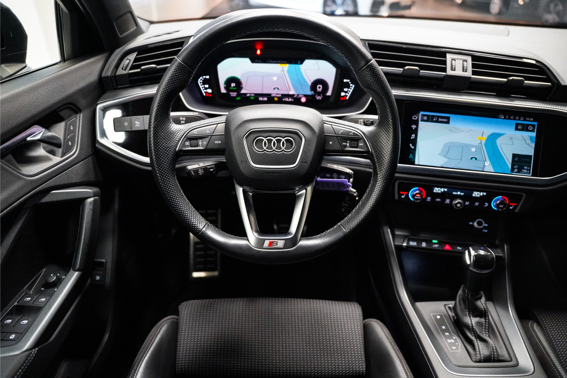Een fraaie Audi Q3 45e hybrid S-Line met zwart optiek en de fraaie 20 inch wielen! De Audi is afkomstig van de Audi dealer en dealeronderhouden.