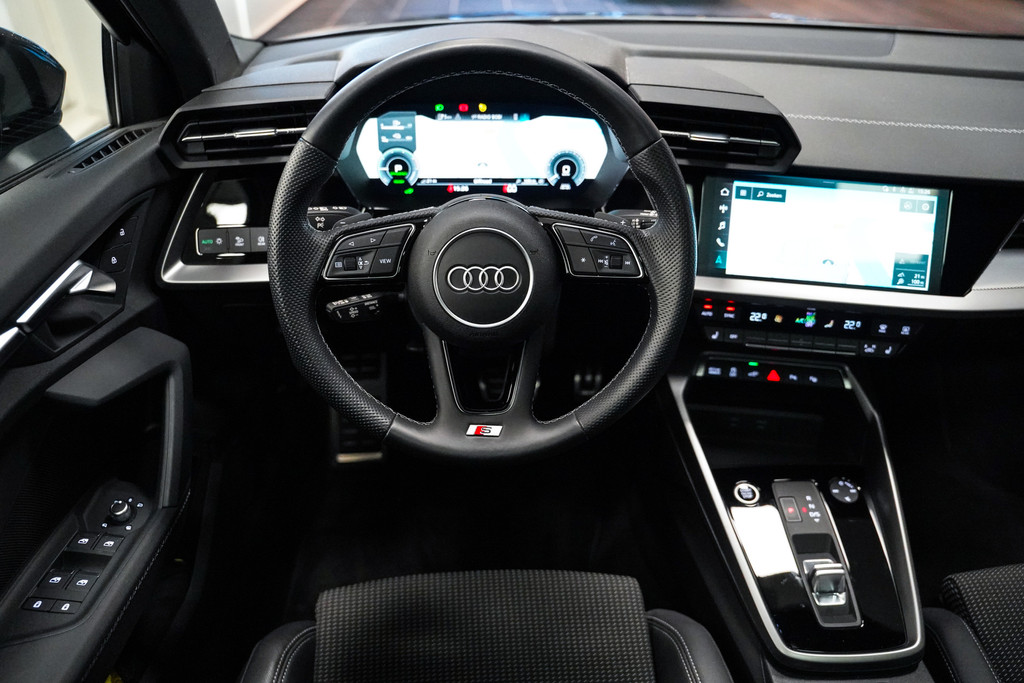 Een fraaie Audi A3 Sportback 45e S-Line met zwart optiek en 19 inch zwarte wielen! De Audi is afkomstig van de Audi dealer en dealeronderhouden.