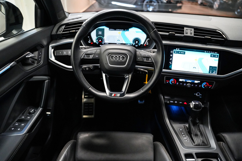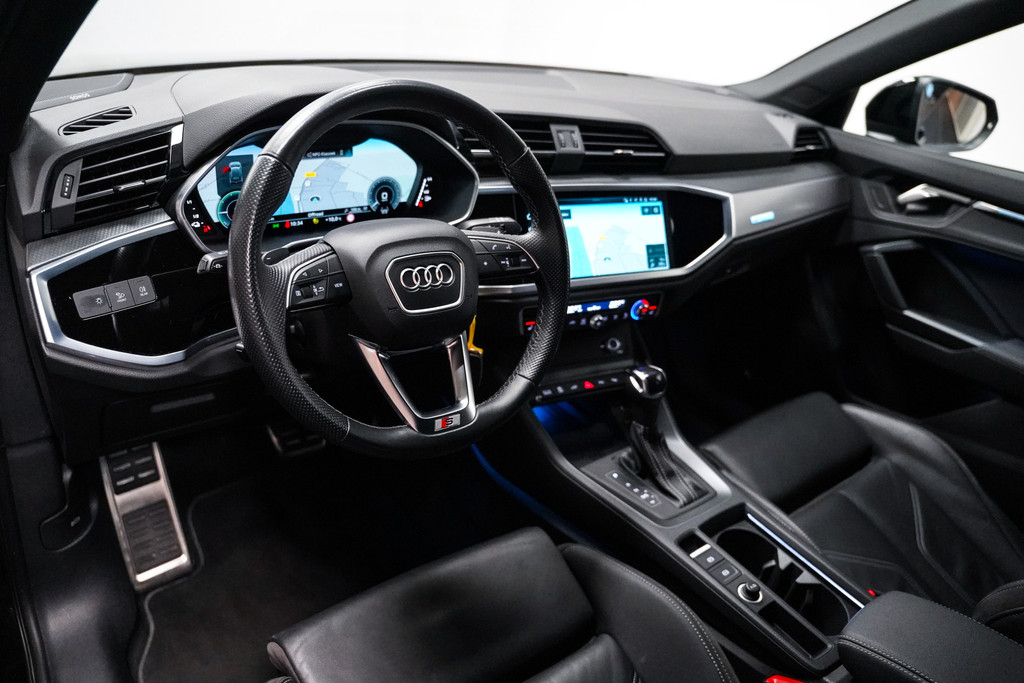 De Audi Q3 zoals we hem graag zien; 20 inch, zwart optiek, full led, lederen sportstoelen, Sonos audio, camera, adaptive cruise control, sfeerverlichting, stoelverwarming, een elektrische klep en een trekhaak!