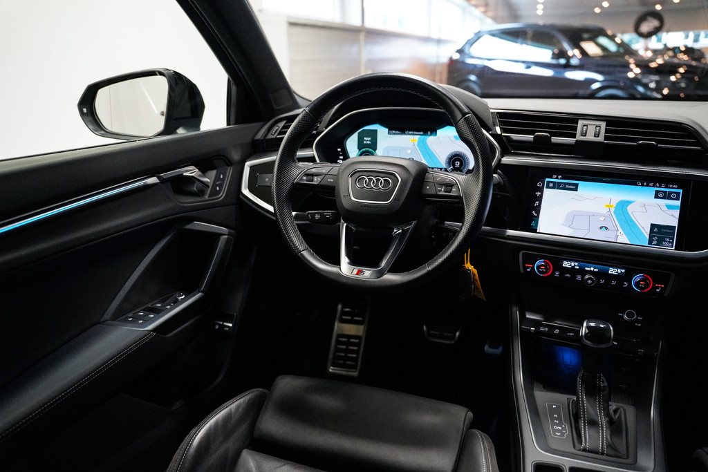 De Audi Q3 zoals we hem graag zien; 20 inch, zwart optiek, full led, lederen sportstoelen, Sonos audio, camera, adaptive cruise control, sfeerverlichting, stoelverwarming, een elektrische klep en een trekhaak!