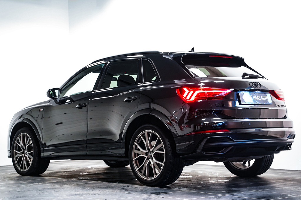 Een zeer complete Audi Q3 45e hybrid S-Line Black edition afkomstig van de Audi dealer. De Audi heeft de goede opties waaronder 20 inch, full led, zwart optiek, S-Line pakket, leder/alcantara sportstoelen, elektrisch verstelbare stoelen, Sonos audio, 360* camera, sfeerverlichting en een trekhaak!