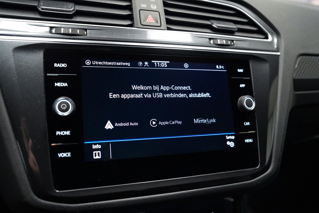 Een zeer fraaie Tiguan R-Line in de geweldige kleur delfin grijs met o.a. het black style pakket, full led, adaptive cruise control, apple car play, een verwarmbaar stuur en een trekhaak!
