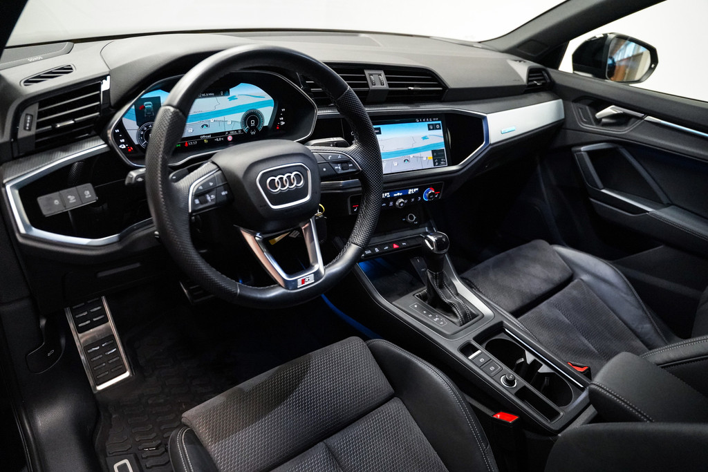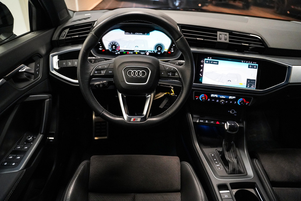 Een zeer complete Audi Q3 45e hybrid S-Line black edition met o.a. 20 inch, full led, leder alcantara sportstoelen elektrisch verstelbaar, Sonos audio, 360* camera, adaptive cruise control, sfeerverlichting en een zwenkbare trekhaak!