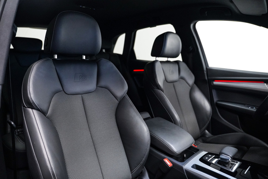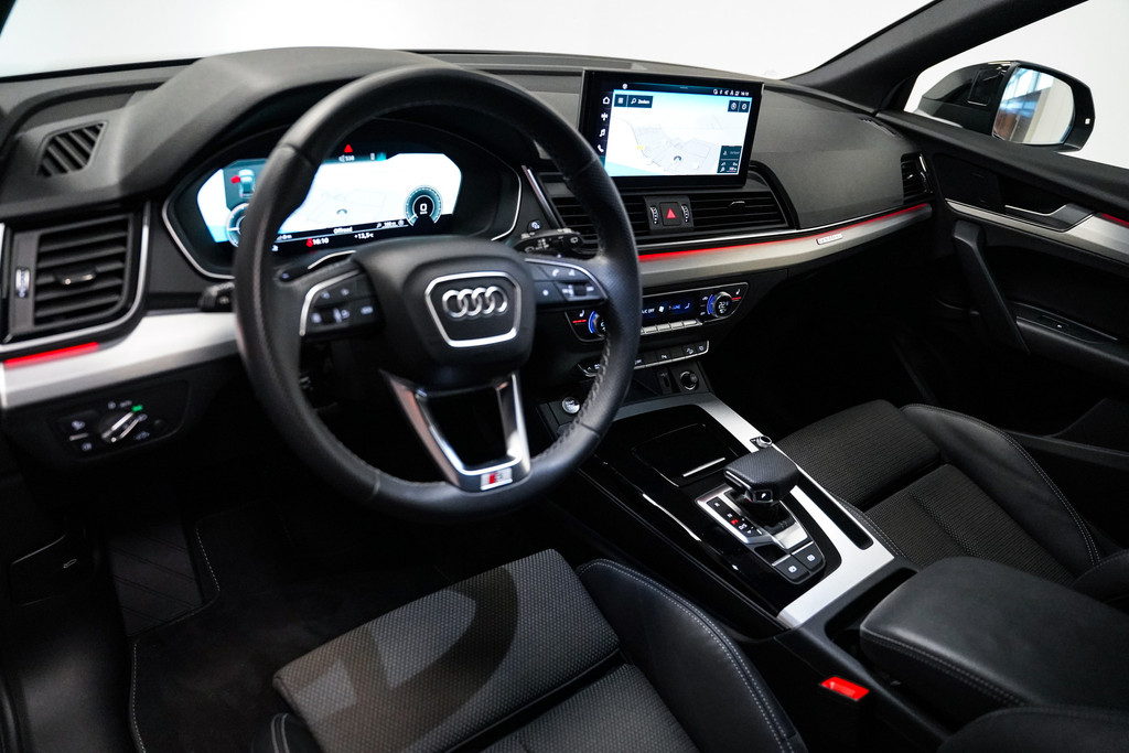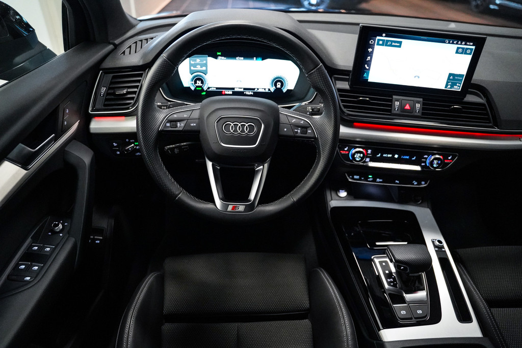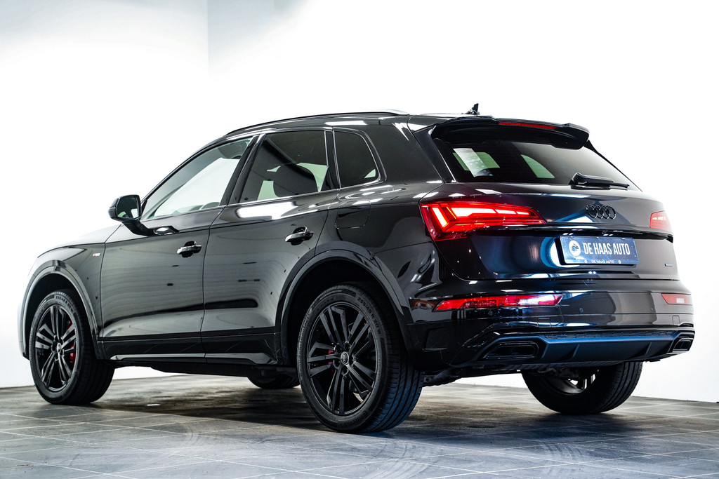 Opnieuw een fraaie Audi Q5 (facelift model) 50e hybrid afkomstig van de Audi dealer met o.a. het S-Line pakket, zwart optiek, 20 inch (zwart), matrix led, half lederen sportstoelen (S-Line), adaptive cruise control, side assist, apple car play, stoelverwarming, camera, sfeerverlichting en een elektrische klep.