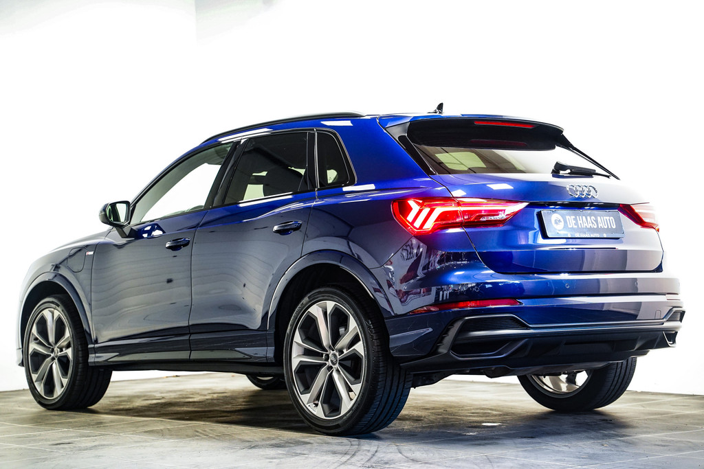 Een fraaie Audi Q3 45e S-Line afkomstig van de Audi dealer, dealeronderhoud en een zeer gunstige kilometerstand! De Audi heeft o.a. het S-Line pakket, zwart optiek, full led, 20 inch, half lederen sportstoelen, adaptive cruise control, 360* camera, keyless, stoelverwarming en Sonos audio!